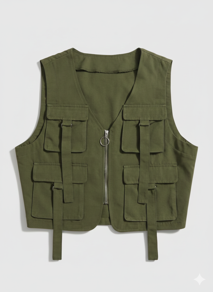 This unisex V-01 Zip Vest comes in a stylish olive green color, making it perfect...