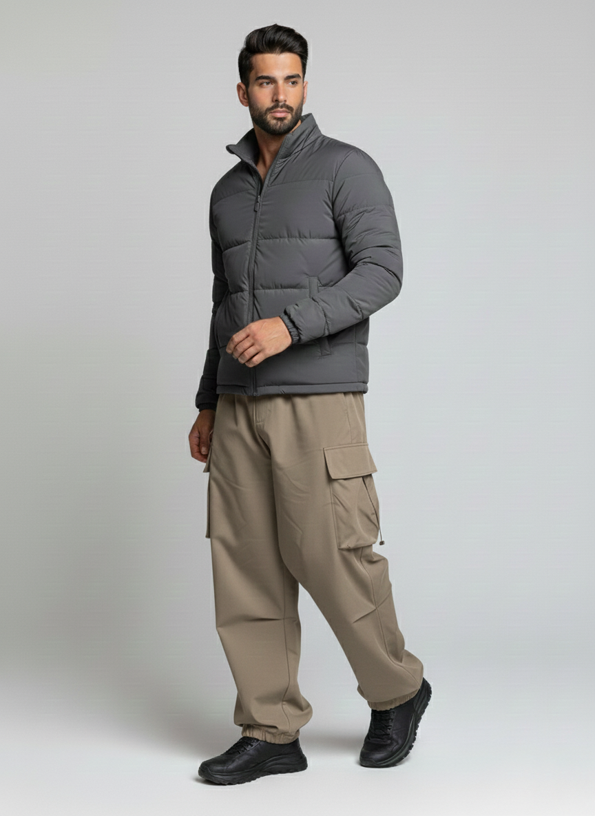 This is a Cargo Trouser for Men, available in Olive Green, Black, Beige, and Coffee...
