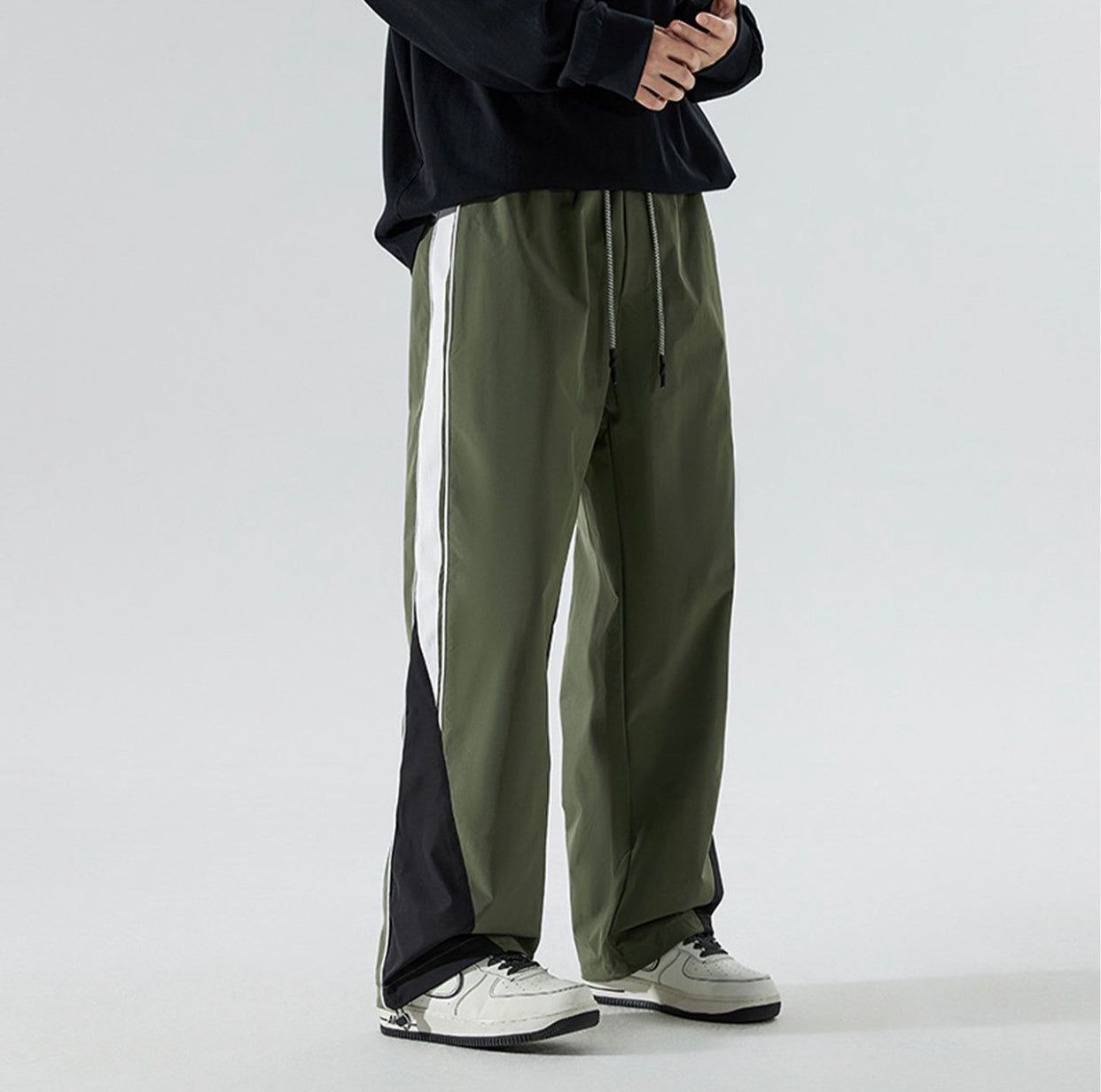 The Swift Mode Pants are designed for unisex use and come in a classic black & olive green color. Made with 100% blended cotton, these pants feature a contrasting pipe-in pattern and have a straight/wide leg style, making them perfect for a casual fit. These track pants are both machine washable and suitable for professional dry cleaning, and their natural waistline and long length provide a relaxed and natural fit for any body type. Please note: the actual product color may slightly differ due to lighting and screen settings.