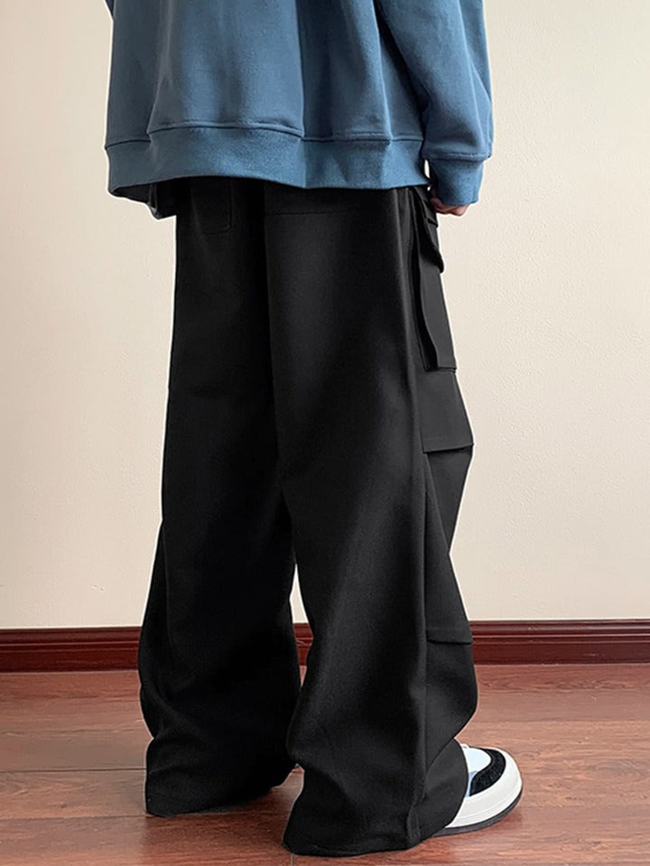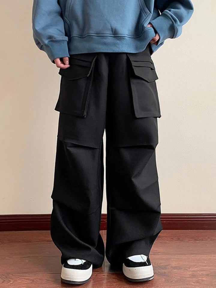 These 3D-Flap Cargo Pants for men come in a black color, have a straight leg style, and feature side and flap pockets. They have a button waist closure and a natural waistline. Made of 100% cotton, these pants have a baggy fit and are perfect for summer and spring seasons. They can be either machine washed or professionally dry cleaned, and are unlined and not sheer.