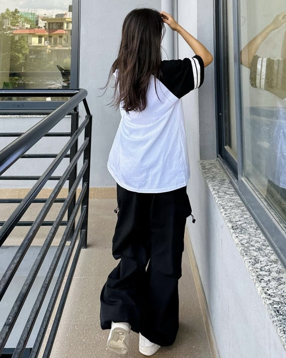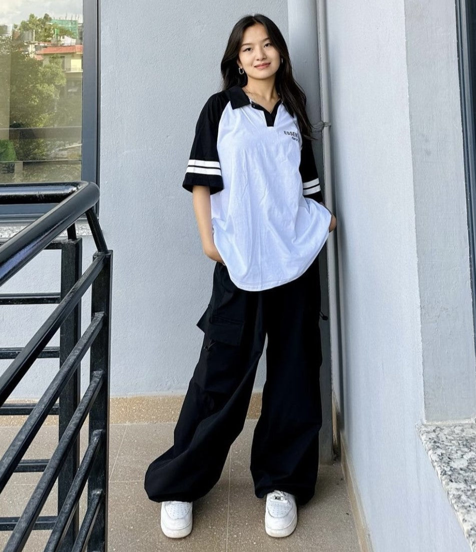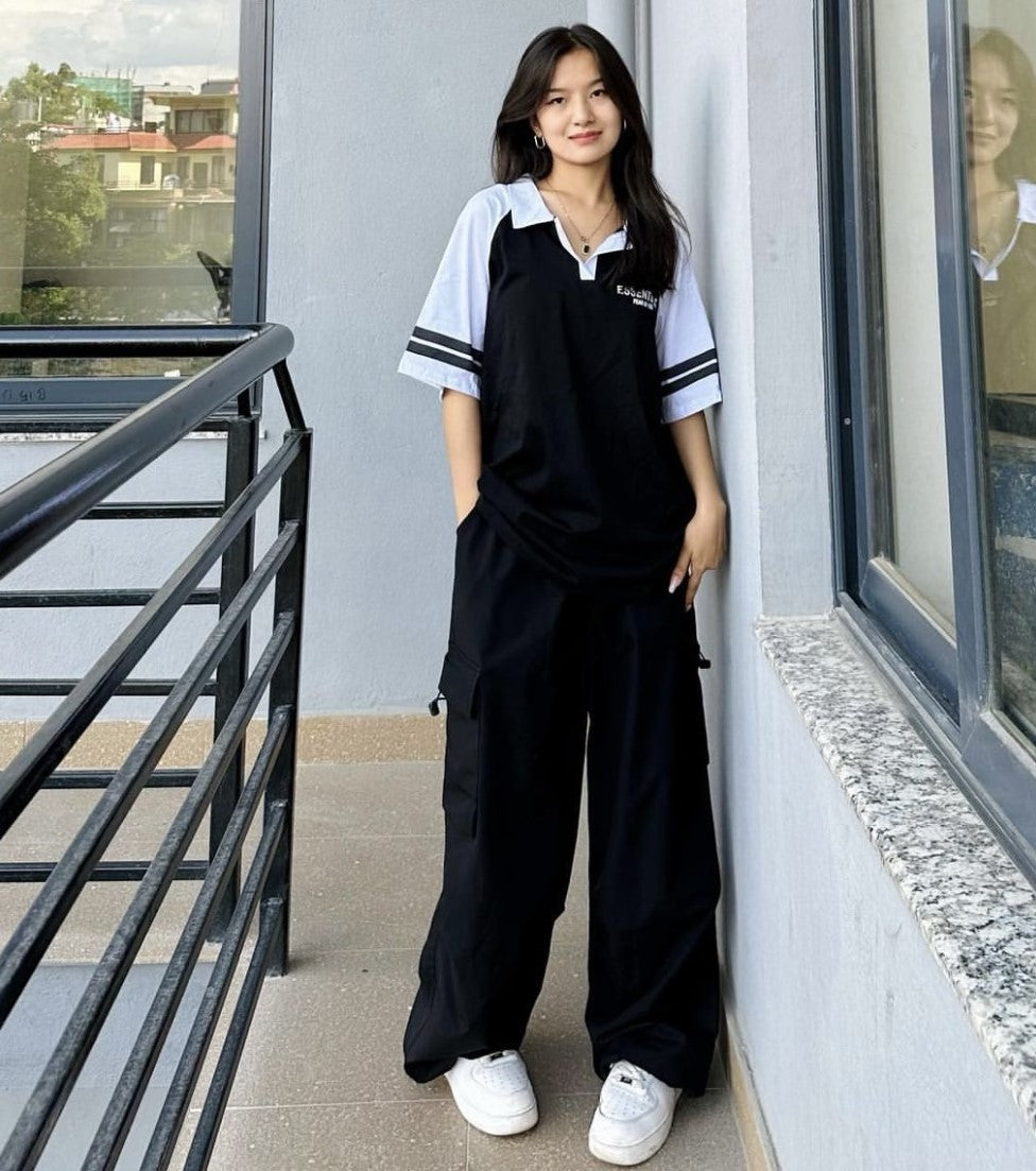 These Black Urban Cargos feature a wide leg design and drawstring waist closure, making them perfect for both men and women. The fabric is a blended cotton that is non-stretch and body is unlined. These cargo pants are long in length and have a baggy fit, adding to their appeal as a versatile and comfortable choice. In terms of care, they can be easily machine washed or professionally dry cleaned.